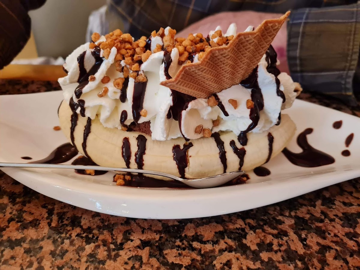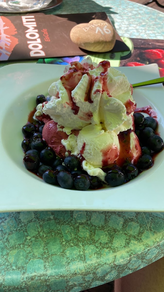 The star of the show at Eiscafé Dolomiti is, of course, their incredible ice cream menu. One of the most popular dishes is the Heidelbeerbecher, a refreshing dessert that combines the rich flavors of blueberries with velvety ice cream. For those who love a classic indulgence, the Banana Split is a must-try. This dessert features creamy ice cream, topped with fresh banana slices, whipped cream, and a drizzle of chocolate sauce. It's a fun, delicious treat for anyone craving something familiar yet satisfying.